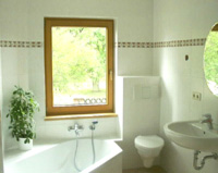 Die Ferienwohnung besteht aus • einem separaten Wohnzimmer • Küche • einem separaten Schlafzimmer • Bad mit Dusche/WC Weiterhin steht Ihnen unmittelbar am Haus ein alter Obstgarten und ein Pkw- Stellplatz zur Verfügung. | |